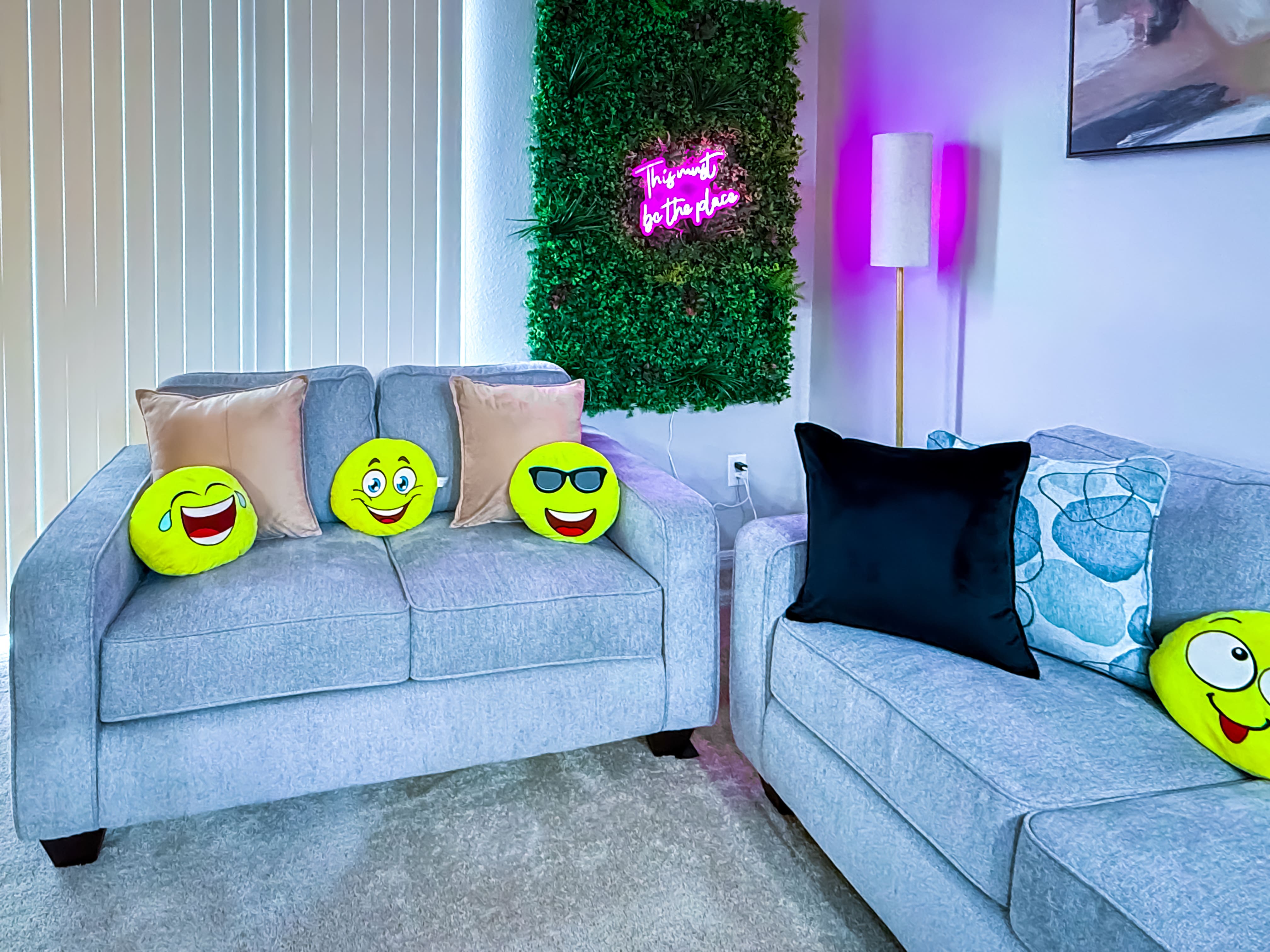 We’ve created a warm and inviting retreat with everything you need: -Living Room – Spacious open-plan lounge with a Smart TV, perfect for movie nights or game-day fun. -Dining Area – A cozy spot for family meals, with an easy flow to the kitchen and living room. -Fully Equipped Kitchen – Cook anything from quick snacks to full dinners with modern appliances and cookware. -Bedrooms – Comfortable, designer-inspired rooms with plush bedding and plenty of storage. -Bathrooms – Modern and spotless, with a walk-in shower, fresh towels, and toiletries provided. -Wi-Fi & Comforts – High-speed internet, air conditioning, and in-unit washer/dryer for your convenience.